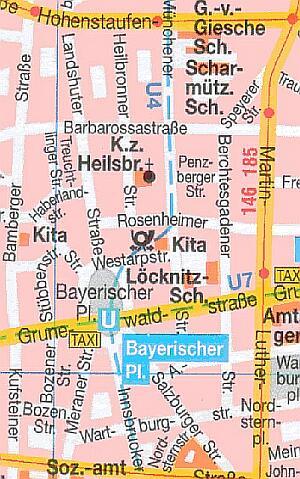 Juden in den Jahren 1933-45. "Orte des Erinnerns", so heißt eine Dokumentation in Wort und Bild, die die Klasse 10c seit Mai 2002 im Lichthof der LBO ausgestellt hat. Die Rassenpolitik der Nationalsozialisten gegenüber der jüdischen Bevölkerung zwischen 1933 und 1945 wird am Beispiel des Denkmals (in Form von Schildern an Straßenlaternen) im Bayrischen Viertel in Berlin / Schöneberg dargestellt. |